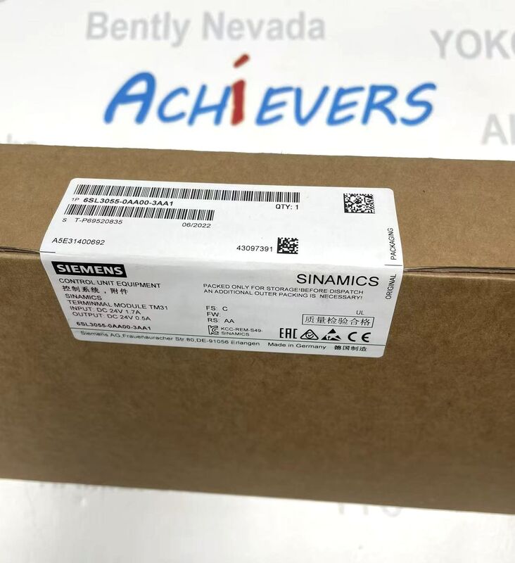 Model Produk: 6SL3055-0AA00-3AA1; Merek: Siemens; Seri Produk: SINAMICS TM31; Peringkat Perlindungan: IP20; Jenis Pemasangan: Pemasangan Rel DIN; Negara Asal: Jerman; Berat Bersih: 0,49 kg (1,08 lb)